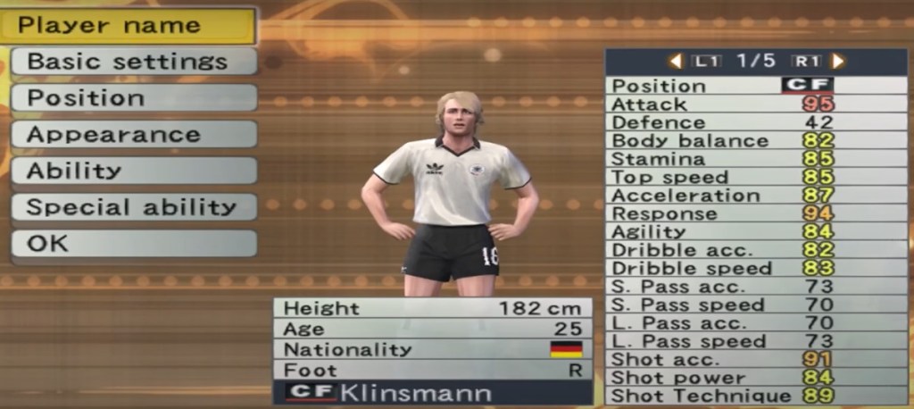 Winning Eleven 2022能力值: