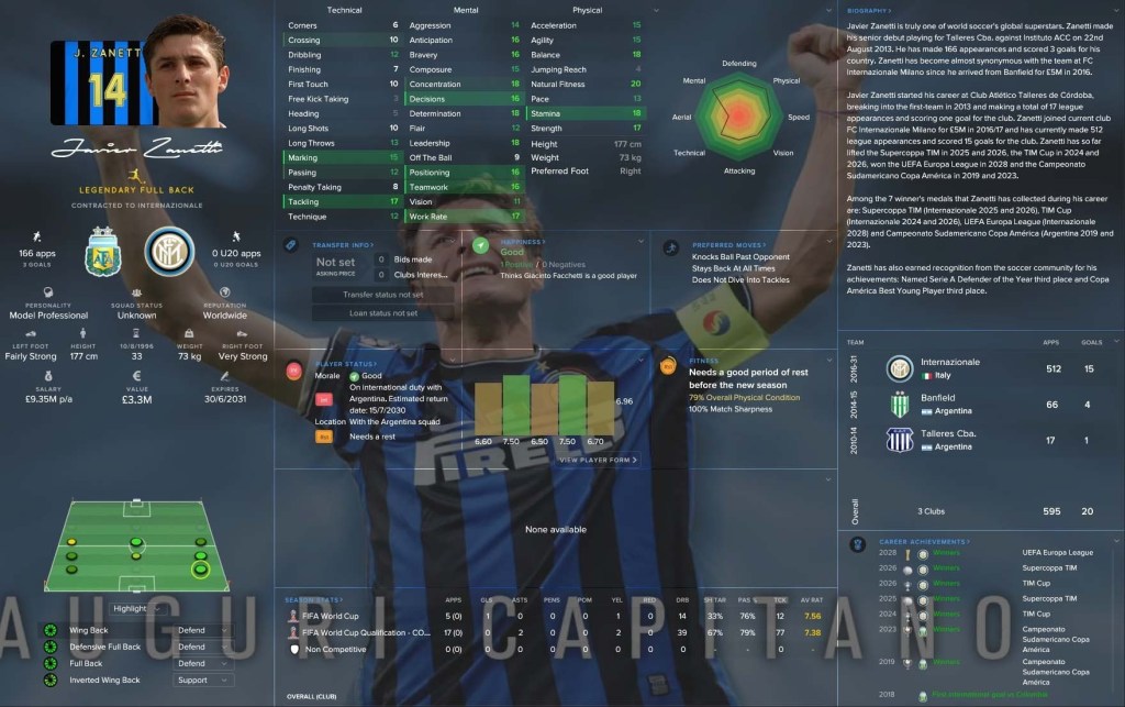 他的職業生涯幾乎完全與意大利豪門國際米蘭(Inter Milan)連繫在一起,